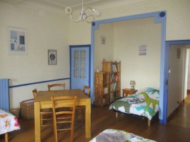 Venez vous ressourcer dans notre appartement à l'étage de notre maison principale ( accès avec clés ), ancien relais de chasse, avec 4 chambres pour 3 couples avec 2 à 4 enfants de plus de 3 ans, et 2 enfants de moins de 3 ans ( 2 lits parapluie ). Une grande salle de bains commune ( équipements pour BB ), 2 WC, grand salon télévision bibliothèque ludothèque, grande cuisine toute équipée ( 2 chaises BB ).Terrain de jeu illimité : la nature, vous êtes amateurs de pêche, de randonnée à pied ou en VTT, de visites touristiques. Animaux acceptés. Salon de jardin à l'extérieur, nos 2 ânes broutent autour de la propriété et du petit gîte à coté. Notre site www.lapetiteresie.fr pour tarifs en fonction du nombre de personnes et contact