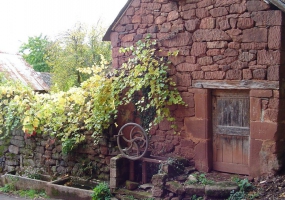 Aux détours des chemins de ce circuit des "grès rouges", observez-bien les hameaux que vous croiserez: les maisons, les fermes, les fours à pain, tout ici ou presque est bâti en grès rouge. le grès rouge se trouve dans une couche gélologique de l'ère primaire, et il n'apparaît que dans les régions où les couches de roches superficielles ont été profondément érodées. En Lozère, c'est dans cette région frontalière avec l'Aveyron que l'on rencontre le plus ce matériau. Facile à travailler, en plus d'être résistant et dur, il est couramment utilisé pour la construction de bâtiments dans la région.