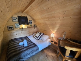 Cabanes en bois toutes en rondeur de 9m2, les cabanes Pods originales sont équipées d'un lit de 140 et d'un aménagement intérieur "douillet". Une terrasse équipée permet de profiter de l'extérieur et du calme des lieux. Fonctionnement sous le principe de la chambre d'hôtes, vous y trouverez drap, couette, oreillers et serviette de bain. Un petit déjeuner vous sera livré le matin, en panier, devant votre cabane pour un plaisir nature. Une salle de bain, avec douche et WC, est mise à votre disposition à proximité des cabanes. Idéales pour les randonneurs, motards ou visiteurs du coin désireux de voyager léger. Un petit plaisirs atypique en plein nature...Découvrez également nos bulles transparentes : Immergées dans la végétation, elles vous feront passer une nuit inoubliable à la belle étoile dans le confort intégrale d'une chambre d'hôtel.