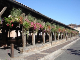 Construites en bois de chêne en 1440 puis reconstruites à la suite d'un incendie en 1670, ses dimensions (80m long,20m large et 10m haut et 89 piliers) en font une des halles les plus réputées de la région.Elles abritent le marché tous les samedis matin.Lors de l'incendie de 1670, les halles ont été reconstruites à l'identique grâce à la diligence du maire Philibert Collet et à la générosité de Melle de Montpensier appelée "La Grande Demoiselle", Comtesse de Châtillon et cousine du roi Louis XIV, qui autorisa les habitants à prendre le bois nécessaire dans sa forêt.