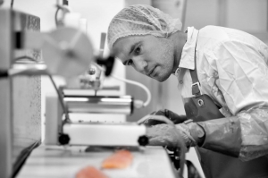 Implanté au cœur de la Dombes, à Saint-André-de-Corcy, le Fumet des Dombes est une entreprise artisanale créée en 1988 avec pour principal objectif de valoriser, par le fumage, les poissons en général et la carpe des étangs de la Dombes en particulier.De fumoirs en fumoirs, la gamme s’est étendue pour offrir aujourd’hui un large choix de poissons fumés d’eau douce, de mer ainsi que des saumons. Carpes, ombles, truites, anguilles, thons, espadons... sont ainsi salés avant de séjourner en fumoir. Pendant quinze heures, on alterne alors séchage et fumage. Une fumée de grande qualité est produite par la friction de bûches de hêtre et de chêne sur une meule. Les poissons sont ensuite affinés en chambre froide avant d’être désarêtés (à la main), tranchés et conditionnés.En 2016, Le Fumet des Dombes s’est doté d’un atelier de cuisine afin de proposer des produits cuisinés dans la perspective de se diversifier tout en continuant à valoriser les produits régionaux. Les poissons sont rhônalpins et les ingrédients de qualité (crème de Bresse AOP, vin du Bugey...) Au menu : terrines (truite, carpe, truite/omble, truite/carpe/esturgeon), médaillon de carpe et sa sauce ecrevisse, rillettes de poissons d’eau douce ou de mer.Nous avons un magasin d’usine permettant de faire de la vente directe auprès des particuliers.