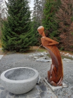 C'est à l'occasion de la 1ère fête du bois à Passy qu'André Sandel a réalisé sur place cette sculpture, pour le plus grand plaisir des habitants et des visiteurs. Tendue comme un arc, l’œuvre s’élevait au dessus des montagnes. Aujourd’hui, suite à sa restauration, elle alimente un bassin à proximité du Lac Vert.