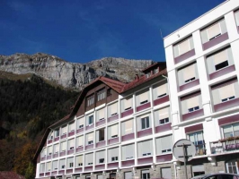 Labellisé « Patrimoine du XXe siècle », il signe à la fois la tendance régionaliste de l’époque et le tournant radical que va prendre l'architecture moderne. La petite chapelle, indépendante des bâtiments principaux, est dédiée à Saint-François de Sales. Ses quatre grandes vitraux, richement colorées, évoquent à la fois des sujets bibliques et de charmantes scènes familières.À quelques centaine de mètres plus haut, sur le sentier de randonnée, une stèle commémorative rappelle la coulée de boue meurtrière qui emporta plusieurs pavillons du sanatorium du Roc des Fiz en 1970.