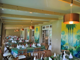 Votre déjeuner dans les Ecuries face aux jardins. Le chef saura vous proposer un déjeuner aux saveurs typiquement normandes.