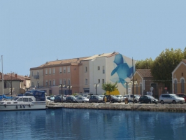 Après un mois de travail à la vue des habitants de Martigues, Guillaume Bottazzi, artiste français, dévoile son œuvre en plein cœur du quartier de l'Ile. C'est sur un mur de 82 m² que le peintre propose une interprétation libre d'une fresque de 10 mètres de haut par 8 mètres de large (2018). Un tableau monumental et poétique, inscrit dans le patrimoine martégal et inspiré de l'histoire maritime de Martigues. Un camaïeu de bleu qui évoque Martigues, ville de pêcheurs. Sa signature ? Les courbes. On raconte que ces grandes courbes de couleurs réduiraient l'anxiété. L'artiste a voulu partir sur l'idée d'une forme qui s'éveille faisant référence au va et vient sur le canal. Ensuite, libre à chacun de l'interpréter selon sa sensibilité. Située sur une façade du quartier de l'Ile, à proximité de l'entrée au port, cette œuvre est un véritable phare qui indique le cap aux bateaux venant de méditerranée. L'artiste utilise une technique du XVIème siècle à l'huile sur toile. Une superposition de couches de peinture selon la technique du glacis qui permet de sublimer les couleurs en jouant sur les transparences. Guillaume Bottazzi a également réalisé la plus grande peinture du Japon. Une œuvre pérenne de 900 m², fleuron de l'art contemporain sur l'île d'Hokkaido. L'artiste a également réalisé une œuvre à Paris (La Défense) de 216 m² et une œuvre à Bruxelles (Place Jourdan) de 112 m². L'artiste lyonnais a signé plus de 65 projets dans l'espace public, enchaînant les fresques murales gigantesques en milieu urbain.