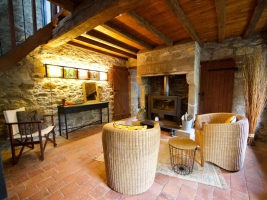 Maison ancienne en pierre rénovée située dans le centre bourg à proximité de l'église (les cloches sonnent entre 8h et 20h). RDC avec marches intérieures : salon (poêle à bois), séjour/cuisine (TV), coin toilette (lavabo, wc). Etage avec 3 espaces nuits : salle d'eau/wc, mezzanine avec poutre basse traversante et 1 lit de 160, 1 chambre avec 1 lit de 160 (accès par ouverture basse), 1 chambre avec 2 lits de 90. Wifi. Jardin arboré aménagé en terrasses surplombant le plan d'eau avec partie de 70 m² close (salon de jardin, plancha électrique). Possibilité de pêche dans plan d'eau en contrebas (carte de pêche journalière nécessaire). Parking public à 50 m. Les animaux ne doivent pas accéder à l'étage.Options : Ménage de fin de séjour : 60€/séjour ; Location draps 1 ou 2 pers. : 12€/séjour ; Location linge de toilette : 8€/pers/séjour. En supplément :Chauffage : relevé de compteur général (déduction faite de 8 kWh par jour pour consommation courante). Taxe de séjour.