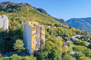 Thème : montagneun aigle géant pour représenter l'élan dynamique de Moûtiers, à l'image de l'aigle qui prend son envol.Une tour : un support rêvé pour des graffeurs !Cette oeuvre réalisée sur la tour du belvédère, haute de 42 m représente un aigle géant sur fond doré.Le but est de symboliser l'élan dynamique de Moûtiers, à l'image de l'aigle qui prend son envol.Réalisée en 2018 par TSK Crew