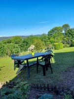 Maison de caractère indépendante dans un village avec habitation au 1er étage.Dominant la vallée de la Dordogne avec vue panoramique, à proximité de la rivière, des plus beaux Villages de France et de nombreux sites touristiques. Diverses activités sur la rivière (baignade, canoé …), randonnées à partir de la maison.Intérieur confortable et bucolique : une chambre avec 1 lit 160 et une chambre au 2e niveau avec lit 140. Séjour avec TV, salle-à-manger avec coin cheminée (condamnée). Cuisine avec tout le nécessaire. Salle d'eau et WC indépendant.Jardin privatif et terrasse fermée avec vue sur la Vallée de la Dordogne. Barbecue, salon de jardin et chaises longues. Grange indépendante servant de garage pour 1 voiture + 4 vélos ou 2 motos. Parc ombragé.Animaux acceptés sous conditions.