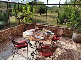 Bienvenue au Palmier d'Alice, havre de paix niché au cœur des vallées corréziennes, à proximité immédiate de Collonges-La-Rouge.Notre belle maison de grès rouge s'ouvre aux vacanciers avec une première chambre spacieuse pour un couple accompagné ou non d'un enfant (- de 2 ans) ou d'une suite familiale grâce à l'accès à une chambre attenante équipée de deux lits superposés accessibles pour deux enfants ou adultes. Une deuxième chambre peut également accueillir un couple, accompagné ou non d'une troisième personne (lit simple mis à disposition)Le petit-déjeuner est servi sous une verrière extérieure, où il est possible d'apprécier la vue sur les collines environnantes.