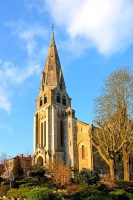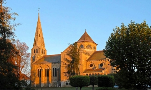 Œuvre de l’architecte Emile BRUNET, elle a pour particularité d’être construite en béton, meulière et brique. A l’intérieur, on peut y admirer divers éléments provenant de l’ancienne Eglise St Denys, détruite en 1968, comme des vitraux datant du 16ème siècle ou la pierre tombale de Thibault de Pontmoulin.