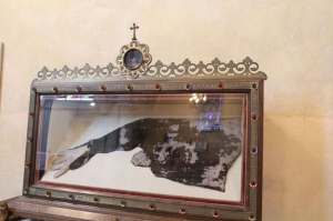 Le portail en bois datant du 13ème siècle. est orné de 17 fers à cheval, sans doute laissés par des voyageurs reconnaissants envers le saint protecteur.