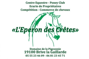 Ouvert toute l'année. Encadrement BEES 1. Manège, carrière, terrain varié, poney-club. Enseignement, promenades, dressage, CSO. Pension chevaux. Possibilité d'hébergement en chambre sur place.