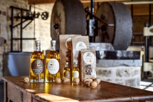 Visite de la noyeraie (avec vue sur le château de la Vicomté de Turenne) puis présentation de la chaîne de traitement de la noix en coque (lavage à l’eau, écalage du brou), suivi de la présentation de la chaîne de préparation des cerneaux (cassage et énoisage), et enfin démonstration d’une pressée traditionnelle sur le moulin à huile de noix centenaire. Pour finir, dégustation de plusieurs huiles (AOC Périgord, Origine Corrèze), cerneaux et vin de noix vertes, farine de noix sans gluten.