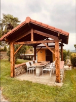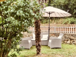 Gîte de charme au pied des Pyrénées.6 personnes max.Cuisine ouverte entièrement équipée : lave-vaisselle, micro-onde, cafetière, grille-pain, réfrigérateur américain, plaque à induction, four, lave-linge, sèche-linge, fer à repasser.TV, Wifi accessible.Equipement bébé sur demande (sans surcoût).Tonnelle avec table en pierre. Barbecue. Salon de jardin et chaises longues.