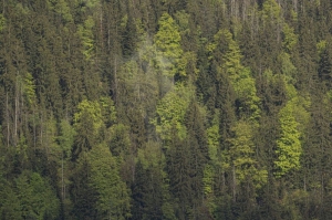 En montagne, les paysages et la végétation changent rapidement avec l’élévation de l’altitude. C’est ce qui s’appelle "l’étagement de la végétation". Ainsi, entre 800 et 2000 m d’altitude selon les versants, vous vous situez à l’étage montagnard, royaume de la forêt... Vous observerez de belles forêts mixtes, dans lesquelles se côtoient des arbres à feuilles caduques, qui tombent à l’automne, comme les Hêtres, et des essences à feuillages persistants comme les Epicéas ou les Sapins ... Soyez discrets et attentifs, vous aurez alors l’occasion d’entendre un Pic ou la discrète Gélinotte des bois!