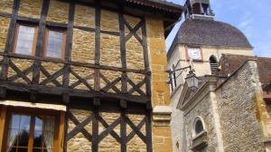 Au pied des collines, le long d’une voie antique qui longeait le Revermont, l'ancien bourg fortifié de Meillonnas possède encore une partie de son château et de son enceinte. Il doit sa renommée à la faïence qu'on y fabriquait aux XVIIIe et XIXe siècles.Le château a probablement été construit vers 1350 par le fils d’Humbert de Corgenon, bailli de Bresse. Du XVe au XVIIIe siècle, il appartient aux La Chambre-Seyssel, famille savoyarde qui le vend en 1740 à Nicolas de Marron, oncle du fondateur des faïenceries. Car depuis l'époque gauloise, Meillonnas est associé à la fabrication de céramiques (""In villa Mellionaco""... Mellona = domaine gallo-romain), car les argiles du secteur sont d'une excellente qualité. A la fin du XVIe s., une terre vernissée, le « service vert », est diffusé dans toute la région et au-delà de Lyon. De la poterie commune et utilitaire fabriquée dans les tupinières (tupin = pot), on bascule à la ""fabrique en fayance"" fondée en 1760 par la famille Marron, dans son château. La proximité du cours d'eau local, le Sevron, participant à cette activité. Les Marron seront propriétaires du château jusqu’en 1839 et la production de faïences cessera quelques années plus tard. Les plus belles pièces sont aujourd'hui visibles au musée du Revermont à Cuisiat et au musée de Brou à Bourg-en-Bresse. A noter que les plaques des rues sont en faïence !L’église Saint-Oyen fut en grande partie reconstruite aux XVIIe et XIXe siècles mais la chapelle Notre-Dame témoigne de son passé médiéval. Elle fut fondée par le chevalier Jean de Corgenon en 1382, ainsi que l'atteste l'inscription gravée sur la clé de voûte. Il avait alors commandé des fresques pour la décorer, lesquelles sont aujourd'hui toujours visibles et constituent l'ensemble le plus complet du département (classées MH). D'inspiration italienne, l'artiste est resté anonyme mais on y retrouve aisément l'influence de Giotto. A l'extérieur, le clocher est coiffé d'un dôme ""à l'impériale"".Meillonnas possède quelques belles maisons anciennes, dont certaines à colombages, tel l’ancien presbytère en face de l’église. Il existe même une ""rue des colombages"". Egalement, trois maisons fortes ""hors les murs"", chemin de Beauregard, datées du XVIe siècle, c’est-à-dire au moment de la construction de la deuxième enceinte (la première datant du XVe).A voir aussi à proximité du château, le parc Balland, traversé par le Sevron où l'on découvre une petite chute d'eau : un véritable havre de paix des plus romantiques. Et de-ci, de-là, des oeuvres d'art garnissent les espaces verts : réalisations des amis artistes de Roger Vailland, dont la maison est à voir dans la rue qui porte son nom depuis 1989 (tombe dans le cimetière communal).Situé en bord de route, un petit bâtiment que l’on peut assimiler à une gloriette, se trouvait originellement à l’angle des routes de Viriat et de Treffort. Mais gênant la circulation, il a été déplacé. Il est à rattacher à la maison visible au fond du parc, maison du XIXe de style colonial réunionais. Sur cet île, on donne le nom créole de « Guétali » à ce type de construction, ce qui signifie ""regarde le"". C'est donc un petit pavillon d’angle qui sert à regarder ce qui se passe dans la rue sans être vu !