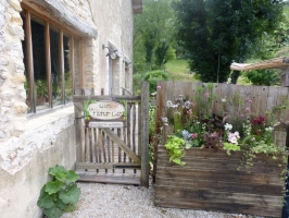 Au fond du jardin, la cabane en bois sous les arbres, avec sa terrasse sur pilotis, sa douche annexe et les toilettes sèches derrière la porte cœur.Bienvenue à PETIT CORENTPittoresque hameau du bout du monde.... vous avez envie .......de vous sentir loin de tout, dans un lieu privilégié et authentique en pleine nature, pour .....Respirer, écouter les oiseaux chanter, guetter les animaux des bois,marcher dans les collines, pédaler sur les sentiers, pagayer sur la rivière d'Ain, siester dans un hamac, faire une balade sous la nuit étoilée, dormir dans une cabane champêtre, partager de la bonne humeur, trouver des petits bonheurs...alors... Vous avez trouvé , c'est ici !Au fond du jardin, la cabane en bois sous les arbres, avec sa terrasse sur pilotis, sa douche annexe et ses toilettes sèches derrière la porte cœur. Deux lits côte à côte, séparés ou rapprochés, pour dormir dans son rêve retrouvé de l'enfance. Le poêle pour les bûches, l'eau courante à l'évier, le réchaud pour la popote, et plein de fenêtres pour apercevoir la sitelle, l'écureuil ou le renard.
