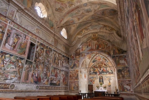 Une chapelle nichée en pleine nature décorée de fresques du XVème siècle, en surplomb de 7 sources dont l’intermittence mystérieuse fut longtemps attribuée à la puissance divine…Horaires : Visites sur rendez vous auprès du bureau d'information de La Brigue.Surnommée "La petite sixtine des Alpes Maritimes", cette chapelle peinte est l'héritière lointaine d'un sanctuaire sacré bâtie en surplomb de sept sources intermittentes.De nombreuses légendes nourrissent l'histoire de ce lieu et de ces sources, dont le débit change dans la journée apportant encore davantage de mystère.La première mention de la chapelle remonte à 1375, deux peintres italiens piémontais de renommée à l'époque sont appelés afin de réaliser les décors des murs intérieurs : Giovani Baleison qui ornera le coeur puis Giovani Canavesio pour l'ensemble de la Nef. Au total 225m2 de fresques seront ainsi réalisées d'un réalisme et d'une qualité remarquable.Une véritable bande dessinée, qui transportera le visiteur de la naissance de Marie à son Assomption, la passion du Christ, la pendaison de Judas et un spectaculaire Jugement dernier de 35m2.L'inauguration des fresque aura lieu un certain 12 octobre 1492...