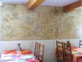 Cuisine raffinée élaborée par des cuisiniers de métier dans une salle de restaurant décorée de fresques humoristiques. Vous serez accueilli dans une ambiance familiale.