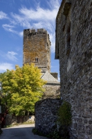 Depuis le XIIe siècle, le château de Valon domine les Gorges de la Truyère. La chapelle et le donjon prennent depuis la cour intérieure toute leur dimension. Il abrite trois salles superposées. Un escalier étonnant qui a traversé les siècles sans dommage vous permet d’accéder à la terrasse.Tout en bas, la rivière Truyère paisible est aujourd’hui assagie par ses innombrables barrages (Grandval, Lanau, Sarrans et Couesque : retenue que l’on domine aujourd’hui depuis Valon). Il n’en fut pas toujours ainsi. Avant, elle était sauvage, bondissante dans ses gorges, taillant ainsi le granit jusqu’à Valon.Le castel d’Avalon est mentionné pour la première fois en 1150. En effet depuis le XIIe siècle le château défie sur son éperon rocheux, le temps et les hommes. De 1378 à 1387 pendant la guerre de 100 ans, le château est occupé par les routiers qui pillent toute la contrée. Abandonné à partir de la Révolution, il servira de carrière pour la construction du village.Son imposant donjon demeure et les rénovations apportées lui redonnent fière allure.Dans la salle de vie du seigneur, une grande cheminée est prête… on imagine vite un feu réjouissant ! Au 1er étage  la chambre du seigneur est agrémentée d’un superbe lit à baldaquin.Le château de Valon se visite à partir des vacances d'avril, jusqu'à mi-septembre, puis aux vacances de la Toussaint.