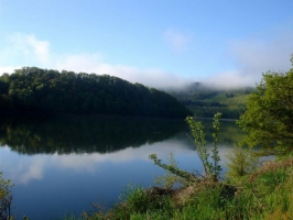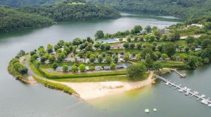Long ruban sinueux de 17 km et de 410 ha, il est alimenté par les eaux montagneuses de la Maronne.Son barrage voûte haut de 69 m a été édifié en 1950 pour la production d’électricité. Les pentes boisées d’épicéas qui le bordent lui donnent la fière allure d’un lac de montagne. Le lac abrite une grande héronnière d’Europe et les parties de pêche aux carnassiers laissent un souvenir inoubliable.Activité pêche (2e cat.) : permis de pêche nécessaire, possibilité de permis vacances.Plages aménagées et mises à l'eau :- La Gineste à Arnac (rive sud)- Longayroux (rive nord)