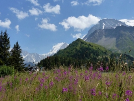 Parfait premier plan de votre photo souvenir du mont Blanc, l'Epilobe à feuilles étroites peuple ces lieux de ses beaux épis rose vif.Outre son aspect esthétique, cette plante à nectar attirant les butineurs se développe facilement. Elle est très utile pour revégétaliser les sols de milieux alpins et nordiques perturbés. La prise de ses racines permet également de stabiliser le sol.