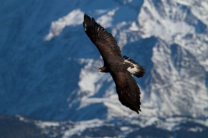 C’est un prédateur, armé pour la chasse ! Grâce à de grandes et larges ailes, il plane haut dans le ciel à la recherche d’une proie. Sa vue exceptionnelle repère marmottes (son repas préféré), lièvres, renards ou lagopèdes et parfois même jeunes chamois ou bouquetins !Son arcade sourcilière prononcée agit comme un pare-soleil lors du piqué qu’il effectue pour saisir sa proie. Il est équipé de griffes appelées serres pour la capture, d’un bec puissant, crochu et tranchant pour déchiqueter la chair.