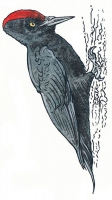 C’est le plus grand des 8 pics présents en France. A l’origine, espèce purement montagnarde , il se rencontre désormais aussi en plaine ! En effet, il s’adapte aussi bien aux forêts de feuillus que de résineux, dès lors qu’elles sont de grandes surfaces et qu’elles disposent de bois morts laissés sur place et de vieux arbres de gros diamètres.Il se reconnaît aisément à son plumage entièrement noir égayé d’une tâche rouge vif, limitée à la nuque chez la femelle et plus étendue chez le mâle.