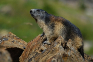 La Marmotte est le met préféré de l’Aigle royal et dans une moindre mesure, du Renard. Toujours vigilante, en position de « chandelle », elle surveille donc son environnement pour ne pas se faire prendre. Grâce à des yeux au champ de vision très large, à une ouïe et à un flair très performants, rien ne lui échappe. En cas d’alerte, elle prévient les autres par un cri d’alarme : très aigü et bref pour un danger venant du ciel, sifflé et répété pour un danger au sol. Et ce danger, c’est parfois vous !