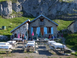 Un creux de verdure dans l’immense paysage lunaire du Désert de Platé, quelques chalets. Vous êtes arrivés au refuge du même nom. Géré par le CAF (Club Alpin Français), ses gardiens vous réservent un accueil dont ils ont le secret : cuisine italienne, pain et confitures maison, coin bibliothèque naturaliste et longue-vue pour observer les bouquetins notamment.Mais attention à ne pas trop vous abandonner à ce bonheur ! La sobriété s’impose car ici l’eau et l’énergie sont rares !