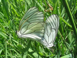 Tout vêtu de blanc et délicatement nervuré de noir, tel se présente le Gazé, aussi appelé Piéride de l'aubépine.Les papillons de son unique génération annuelle volent d'avril-mai à juillet-août.Ce cliché fige un accouplement de ce papillon, autrefois très commun en France.Ce papillon est menacé et est en régression massive depuis plusieurs années.- Le développement de l'agriculture intensive a fait disparaître peu à peu ses habitats de reproduction.- L'utilisation des pesticides lui ont été très nocifs. - Les haies ont été arrachées, supprimant les plantes dont se nourrissent les chenilles. Le Gazé est encore relativement commun dans les zones montagneuses, en particulier au-delà de 800 mètres d'altitude où l'agriculture est plus extensive.