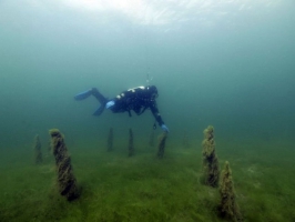 Face au château de Duingt, vous pouvez observer les vestiges d'une civilisation remontant à plus de 3000 ans avant notre ère. En effet, sous les eaux du lac d'Annecy se cachent des anciens sites palafittiques. Des pieux en bois témoignent de l'existence d'anciennes habitations sur pilotis, construites sous l'emprise actuelle du lac d'Annecy / construites au bord du lac d'Annecy qui était alors plus bas qu'actuellement.Trois zones de ce genre ont été identifiées sur le lac d’Annecy (2 à Sévrier et une à St Jorioz). Elles font partie des 111 sites palafittiques recensés sur l’ensemble de l’arc alpin et inscris au patrimoine mondial de l’UNESCO.