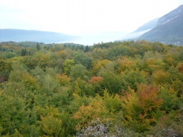 La forêt que vous pouvez admirer aujourd’hui est plutôt jeune : elle a tout juste un siècle. Jusqu’au début du XXème siècle, le Roc de Chère se compose de paysages découverts, largement cultivés (céréales, vignes, pâturages, près de fauche). Ce n'est qu'après la 1ère Guerre mondiale, le dépeuplement des campagnes entraînant un abandon de nombreuses parcelles agricoles, que le massif s’est progressivement reboisé. Aux paysans, bergers et bûcherons succèdent aujourd’hui promeneurs, géologues, botanistes : autres usages, autres regards portés sur les paysages et les milieux naturels...