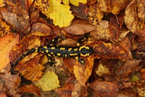Forêt et mares ? Que rêver de mieux pour dame salamandre, le plus forestier des amphibiens du Roc de Chère !Elle ne rejoint l’eau que pour donner naissance à ses larves, munies de branchies, comme des têtards. Mauvaise nageuse, elle retourne vite à la forêt, laissant ses petits mener leur première phase de vie aquatique. Cet animal nocturne a la peau lisse et noire interrompue sur le dos par un motif jaune, occasionnellement orange, de points et/ou de lignes. Chaque individu possède un dessin unique !