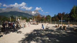 La base de loisirs de Passy se dote d'un nouveau parc pour enfants, dernière génération. Une multitude de modules, au grès du vent, dans une ambiance plage. La vue reste inoubliable.