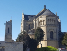 Seule subsiste la tour clocher de l'église romane du XIème. Un second niveau du XIIIe est gothique. L’ancienne église a été détruite dès 1873 afin de bâtir cette nouvelle église de style néo-roman byzantin. La croix (visible dans l'église) figurant le Christ en croix d'un côté et la Vierge Marie de l'autre, date de 1662. CLMH Clocher 1886CLMH Croix de pierre 1907Visible de l'extérieur. Accessible uniquement durant les offices religieux