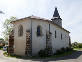 De plan allongé a été remaniée au XIV ou XVe siècle où l’on construit un bas côté au Sud.La travée Est possède une croisée d'ogives retombant en piédroits sur des bases gothiques. Fenêtre à meneaux et chevet polygonal. Bas-côté sud séparé de la nef par 3 arcs en plein-cintre. Elle était une des 2 paroisses de la vicomté de Louvigny, mais dépendait de l' évêché de Lescar. Hors du Béarn jusqu'à la Révolution, cet édifice a été remanié au XIX et XXe siècles.