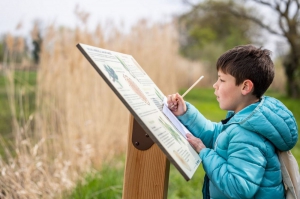 «Physalis et les étangs - Panique à Prêle", c'est environ 1h30 de jeu à vivre en famille avec des enfants à partir de 6 ans, au bord de l'étang Prêle, en autonomie et toute l'année. Aidez Physalis à sauver son étang !Sac de jeu en vente à Dombes Tourisme