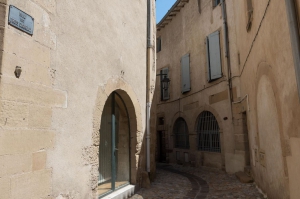 Rue Médiévale avec pavés en têtes de chat. Sur les murs à gauche, en venant de la Place aux Herbes, on peut voir les traces laissées par le moyeux de roues de charrettes qui ont creusé la mollasse.Au n°2 rue des Trois Carreaux, se trouve la tour des Poitiers, érigée aux Xe et XIe siècles.Au sommet, d’anciens créneaux ont été transformés en fenêtres.Cette rue médiévale débouche sur d'autres rues médiévales que sont la rue Merlin et la rue des Clercs.À l’Angle de la rue Merlin et de la rue des Clercs : Maison à Échauguette.