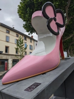 Le musée de la chaussure hors les murs.Inspirée de modèles emblématiques exposées au musée de la Chaussure, ces œuvres rendent hommage à la créativité et à la technique de grands chausseurs, tels que Roger Vivier, Stephane Kelian, Charles Jourdan ....Cette nouvelle pièce vient enrichir le parcours marchand créé en 2019 par la Ville, et rejoindre les 10 premières chaussures monumentales.Jean-Luc Tamisier et Sylvie Favel, mandatés par la Ville, sont à l'origine de cette scénographie urbaine et du design des soclages.Christian Louboutin imagine ce soulier en 1992, s'inspirant d'Andy Warhol et de son univers pop art, graphique et coloré.Quand le dessin devient prototype, la semelle lui apparait trop lourde, trop noire et surtout trop éloignée du croquis qu'il a imaginé.En observant son assistante se peindre les ongles en rouge et d'un geste spontané se saisit d'un flacon et peint la semelle !"C'est comme si le soulier avait pris vie"Depuis, chaque soulier de Louboutin affiche une semelle rougeLes danseuses des Folies Bergères inspirent les premiers dessins de souliers du jeune créateur.Disciple et collaborateur du bottier Roger Vivier, formé chez Charles Jourdan à Romans, Christian Louboutin est devenue en quelques années une figure incontournable du monde de la mode et du luxe.Il est aujourd'hui devenu un symboleDimension sans socle de la version monumentale: L.2,56m X H.1,75m X I.0,88m