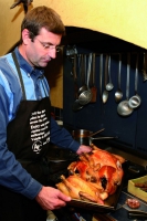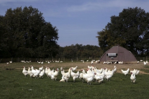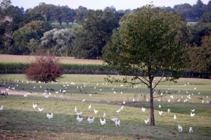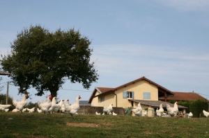 Au sud de la zone d'appellation, nous élevons nos volailles dans le respect de la tradition locale et la passion de notre métier nous pousse à les apprêter pour la vente jusqu'au roulage des volailles festives de fin d'année.3 générations ont forgé l’esprit du domaine et nous souhaitons au sein de la famille Merle cultiver la terre et élever des animaux, dans la nature, en ayant le souci de la faire se renouveler afin que les générations futures puissent poursuivre cette même activité... Nos volailles sont exclusivement nourries de céréales de notre exploitation (maïs blanc de pays, blé et épeautre) et de produits laitiers. Elles ont également libre accès aux prés où elles picorent herbe et vermisseaux. Nous attendons 4 mois pour les poulets, 5 mois pour les poulardes et 8 mois pour les chapons avant de les affiner au sein des épinettes. Nous avons également réconcilié tous les amis du domaine avec notre dinde de Bresse, à la chair fondante et juteuse, élément caractéristique de l'ensemble des volailles de Bresse AOP dont le persillé et l'arôme marqué des chairs est inégalé. Membre du réseau Etik’table, engagé dans une alimentation responsable.Adhérent aux démarches locales "Saveurs de l'Ain" et "Région du Goût".Membre du réseau Collège culinaire de France.