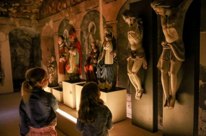 AU CŒUR DU SANCTUAIRE DE NOTRE-DAME DE BOULOGNEDescendez sous la basilique pour découvrir une des plus vastes cryptes de France. Elle est aménagée au XIXe siècle autour des vestiges de la crypte romane découverte lors de la construction de la basilique.→ Parcourez un dédale de galeries aux murs et voûtes entièrement couverts de fresques.VIERGE NAUTONIÈRE ET COLLECTION D’ART SACRÉLa crypte abrite des collections lapidaires et d’art sacré, témoins de l’église médiévale et du culte de Notre-Dame de Boulogne.Statues, tableaux, ivoires, pièces d’orfèvrerie liturgique… la collection contient quelques pièces maitresses, comme l’ostensoir de Thomas Lissau ou le reliquaire du Saint Sang.Accessibilité PMR, accessibilité poussettes, audioguidesTous les jours sauf le lundi : En haute saison du 2 mai au 30 septembre de 9h30 à 18h00 En basse saison du 1ᵉʳ octobre au 30 avril de 9h30 à 12h30 et de 14h à 17h30Fermetures annuelles : 25 décembre, 1er Janvier, 1er Mai et les deux semaines suivant la rentrée des vacances de Noël