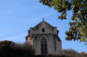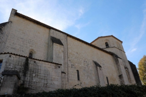 Ancienne vicairie perpétuelle relevant du chapitre cathédral d’Angoulême en 1110, l’église Saint Saturnin est attribuée plus tard à l’archidiaconé et liée à un prieuré conventuel.Une première église romane existait dans la première moitié du 12ème siècle avec une nef unique de deux travées carrées vraisemblablement couvertes de coupoles sur pendentifs, contrebutés à l’extérieur par d’épais contreforts. Du chœur, plus étroit qui faisait suite à cette nef, rien n’a subsisté.Suite aux agrandissements de l’édifice vers l’ouest, à la fin du 12ème siècle, la façade romane est reprise. Un nouveau portail à quatre voussures est cantonné de deux étroites arcades aveugles. Les tympans sculptés de la façade primitive sont remployés et repositionnés au-dessus du Rez-de-chaussée. Le premier groupe sculpté, au nord, représente deux personnages, un saint et un évêque. Les sculptures du tympan sud, figurent le Christ encadré par la Vierge et Saint-Jean.La finesse de la sculpture, le plissé des vêtements, la qualité d’exécution rappelle le style des ateliers de sculpteurs qui ont travaillé sur la façade de la cathédrale d’Angoulême vers 1122.L’église semble avoir assez souffert pendant la guerre de cent ans entrainant au 15ème siècle de profonds remaniements : le chœur à chevet plat, la coupole de plan ovale sur pendentifs sur laquelle s’élève un clocher polygonal, les deux travées orientales vouté.L’ensemble a été restauré vers 1870 puis en 2010.Les restes du prieuré, très remaniés, aux 15ème, 16ème et 17ème siècles se déploient au sud, autour de l’emplacement rectangulaire du cloître disparu.Classée Monument Historique en 1973.