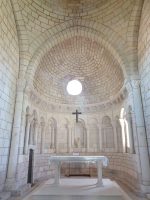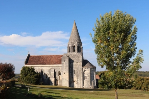 Au croisement d’une ancienne voie romaine reliant Périgueux et Saintes dit "chemin Boisné" et d’une route au sud d’Angoulême, cette petite église vous charmera par la finesse de son décor sculpté, l’harmonie de ses proportions, l’ordonnance de son chevet et de sa façade animés d’arcades…La façade est scindée horizontalement en 4 niveaux par des corniches : rez-de-chaussée avec portail central cantonné d’arcades aveugles, deuxième et troisième niveau occupés par des arcades en plein cintre et dernier niveau coiffé d’un fronton triangulaire.La nef unique est couverte d’une voute en berceau brisé. Le faux carré, couvert d’une coupole sur pendentifs, supporte un élégant clocher à flèche en écaille de pierre.A l’est, se développe une abside particulièrement soignée, animée d’une série de onze arcades. A la naissance de la voute en cul de four qui couvre l’abside, un bandeau décoré de métopes sculptées repose sur des modillons représentant des animaux et des têtes humaines.Curiosité : l’église possède une crypte placée sous le chœur, probablement pour racheter la déclivité du terrain et un oculus a été percé dans la voute de l’abside au Nord-Est. Le 1er juillet, jour de la Saint-Cybard, la lumière pénètre par cet oculus et traverse l’église dans son axe.Classée Monument Historique en 1862.