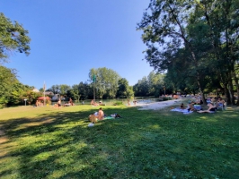 Il permet à tous de se baigner, de pique-niquer dans un cadre agréable et ombragé.Vous trouverez 1 terrain de pétanque, 1 terrain de volley-ball.Location de canoë-kayak, pédalo, paddle.Animaux non acceptés.