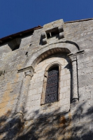 Cette ancienne chapelle du château de Touvre aujourd’hui disparu fut par la suite rattaché à l’évêché d’Angoulême. Le plan en croix latine qui fut adopté dans sa conception architecturale d’origine est aujourd’hui amputé du bras nord du transept. La nef se divise en trois travées, et se prolonge par un chevet plat. Les parties plus anciennes se trouvent dans la nef et le bras sud du transept qui datent du début du 12ème siècle. Le chœur est plus tardif.La façade est épaulée de deux contreforts en glacis. Ils encadrent un portail à deux voussures plus étroit que les arcades placées de part et d’autre du portail central. Seules les voussures supérieures sont décorées ainsi que les chapiteaux des colonnettes placés à la retombée des arcs. A l’étage, une étroite fenêtre est placée sous un grand arc en plein cintre reposant sur des colonnes.Le rôle défensif de cette église est attesté par la présence d’une bretèche au sommet de la façade et rappelle le rôle de protection des églises en période de troubles, notamment pendant la guerre de Cent Ans.Inscrite à l’inventaire supplémentaire des Monuments Historiques en 2018.