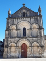 L’église paroissiale de Champniers porte le vocable de Sainte-Eulalie, rare dans la région mais très en vogue dans le sud de la France. Les rares mentions dont nous disposons nous indiquent que cette église était unie au chapitre cathédral au 12ème siècle puis à l’abbaye de Saint-Ausone au 17ème siècle.La forme en croix latine fut adoptée pour cet édifice qui se compose d’une abside en hémicycle couverte d’un cul de four, d’un transept allongé possédant sur chacun de ses croisillons, des absidioles et d’une nef unique de trois travées. L’attrait de cet édifice réside dans la présence de « passages » ménagés entre la nef et les bras de transept puis à l’est entre l’abside et les croisillons. Cette solution architecturale permettant de circuler plus facilement entre les différentes parties de l’édifice est présente dans le Berry et en Anjou mais se retrouve également dans les églises charentaises de Conzac et dans l’église abbatiale de Puypéroux. Au 13me siècle, les voûtes en berceau sur doubleau qui couvraient la nef sont remplacées par des voute d’ogives et au 15ème siècle, une petite chapelle est accolée au mur nord de la nef. Un autre attrait de cette église réside dans ses décors sculptés, aux thèmes iconographiques et symboliques variés …. Cavaliers sculptés, Saint-Georges terrassant le dragon, monstres et personnages semblant sortir d’une forêt de végétaux, la lutte du bien et du mal, le basilic, homme soufflant dans des cornes….Plusieurs travaux de restauration et de réparation furent menés depuis le 18ème siècle et en 1863, la façade est refaite par l’architecte Edouard Warin. Nommé inspecteur des travaux de l’hôtel de ville d’Angoulême puis architecte diocésain, il surveilla le chantier de restauration de la cathédrale et tous les chantiers de Paul Abadie Fils en Charente. C’est à lui que l’on doit l’église Saint-Cybard, les halles d’Angoulême, les hôpitaux de Cognac et de Chalais, le collège de Barbezieux et les usines Lacroix.Le tympan d’origine est aujourd’hui conservé à la Société Archéologique et Historique de la Charente. Il présente un Christ en majesté dans une mandorle assis sur un trône et ses pieds reposent sur une tablette. L’alpha et l’oméga, première et dernière lettre de l’alphabet grec sont gravés sur le nimbe crucifère. Un soleil et une lune sont placé de chaque côté de sa tête et entourant la mandorle les quatre évangélistes. Des personnages et des traces d’inscriptions complètent la composition datée du troisième quart du 12ème siècle. Classée Monument Historique le 26 septembre 1903.