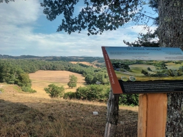 Ladinhac prend soin de son patrimoine, la chose frappe d'emblée lorsqu'on aborde la commune. Loin de donner l'impression d'être figé dans le passé, muséifié, cette coquetterie semble insuffler au village un équilibre entre tradition et vie rurale moderne.Ce souci de mémoire s'explique-t-il par le fait que l'histoire de Ladinhac est l'une des plus anciennes en Châtaigneraie cantalienne ? Toujours est-il que c'est sur le territoire de la commune qu'on a découvert au siècle dernier le plus vieux cimetière de la région. Datée du VIe siècle, la nécropole du Bouscailloux témoigne en effet d'une implantation précoce sur des sous-sols pourtant granitiques et schisteux, peu propices à l'agriculture. Au fil des siècles, l'homme est tout de même parvenu à domestiquer le sol qui le nourrit, et l'attrayante mosaïque de paysages qui en découle et s'offre aujourd'hui à nos regards est depuis 2022 astucieusement mise en musique par un sentier d'interprétation long de 7,5 km. Comme son nom l'indique, "Entre clocher et ruisseau de Cances" associe le patrimoine naturel de la commune à son héritage bâti et rend instructive et captivante cette randonnée familiale, qui n'oublie pas de faire un clin d'œil au massif cantalien qui se propose en toile de fond. D'autant que vous ne serez pas seuls en chemin ! Mimi Siquier, la tenancière de l'un des quatre cafés qui constituaient naguère le socle de la vie sociale de Ladinhac, vous accompagnera tout au long de votre promenade. Pour vous, elle fera revivre le four à pain, le sécadou, le château de La Salle, l'église Saint-Agnan voisine, dont le modeste chevet roman originel laisse deviner combien les dimensions de l'édifice se sont accrues au fil de remaniements successifs ; et même le discret mais indispensable abreuvoir, sans lequel des générations de Ladinhacois n'auraient pu se pourvoir de l'eau qui coule si généreusement dans nos intérieurs modernes. Au terme de votre promenade, vous ferez bien de ne pas quitter Ladinhac si vite car les alentours du village recèlent aussi quelques petits trésors du passé, qu'un second parcours pédestre mettra çà et là sur votre chemin. Ce sont d'anciens moulins, qui puisaient leur énergie des eaux vives ruisselant vers la rivière Goul, qui sont cette fois à l'honneur. Avec "Des moulins à la vallée du Goul", 14,5 km de montagnes russes vous attendent, pour la plupart ombragés. Au prix d'un infime détour, à proximité du moulin du même nom, ne manquez pas la cascade de Vachand, qui est sans doute la plus jolie de la Châtaigneraie. À mi-parcours, lorsque vous parviendrez à la rive du Goul, vos pas se placeront dans ceux des randonneurs au long cours qui empruntent le GR465 de Murat à Conques, l'un des grands classiques de la randonnée itinérante en Auvergne.Boudé par l'axe Aurillac-Rodez, Ladinhac vaut finalement bien un petit détour de 2,5 km, vous ne croyez pas ?