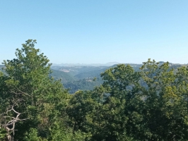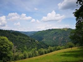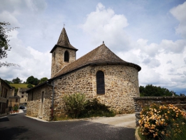 Au sud-est de la région naturelle du Veinazès, lové dans les contreforts de la Châtaigneraie méridionale, se trouve Lapeyrugue. Le village est posé sur une crête est au départ d’un sentier menant dans la vallée du Goul, qu’il surplombe.L’histoire de ce village est intimement liée à sa position géographique singulière, à l’extrémité des contreforts du Cantal. En effet, pendant longtemps, les habitants des lieux, bien que dépendants de la commune et de la paroisse de Labesserette, se trouvaient trop éloignés de ce bourg et son église – situés à 9 kilomètres –, et se tournaient donc vers le village voisin de Pons – à seulement 4 kilomètres, côté aveyronnais.Les Peyruguiens se sont donc adressés à l’évêque de Saint-Flour afin de créer une nouvelle paroisse, ce qui fut finalement le cas en 1846. L’église placée sous le vocable de l’Assomption de Marie et de Saint-Vincent-de-Paul voit ainsi le jour en 1847, pour ce qui est de sa nef. Son clocher est quant à lui érigé en 1864, grâce aux dons des Auvergnats de Paris, des communautés religieuses locales et même de dons provenant d’Amérique. Ce lieu emblématique est donc chargé d’histoire et d’attachement à la construction d’un lieu de culte, significatif à l’époque de la création d’un village. Ce sont, qui plus est, les habitants qui ont fourni les matériaux nécessaires ainsi que de leur temps, afin d’ériger cette église. Une église qui est construite également avec le soutien de la communauté voisine de Pons et de son prêtre.Il est raconté que les objets du culte (dont certains sont aujourd’hui exposés dans le Trésor d’art sacré de l’abbatiale de Montsalvy) feraient partie des objets cachés dans les gorges du Don au cours de la Révolution, ainsi que des objets ayant appartenu à la communauté des “enfarinés”.Le monument du XIXe siècle en pierres de schiste et couvert d’une toiture de lauzes confère un charme particulier au bourg du village, dont les maisons attenantes sont tout autant empreintes du charme de l’architecture locale, avec leurs fenêtres en chien-assis et leurs petits fours à pain.La commune de Lapeyrugue, en tant que telle, naît du démembrement de la commune de Labesserette en 1876. Près de la moitié des hameaux à l’Est du bourg de Labesserette forment la municipalité nouvellement créée, correspondant peu ou prou à la nouvelle paroisse créée 30 ans plus tôt.Pour mieux appréhender l’écrin de nature entourant le village, n’hésitez pas à vous aventurer sur le sentier "La Vallée du Goul”, qui vous mènera dans une vallée préservée, livrant ses atours sauvages au détour du chemin.Dès le départ du sentier, sur la place de l’église, vous accéderez à un panorama exceptionnel, une vue plongeante sur les contreforts de la vallée au pied du village, ainsi que sur les monts du Cantal et le plateau de l’Aubrac à l’horizon. Quelques fois dans l’année, le village se retrouve même en surplomb d’une mer de nuages brumeux, comme s’il flottait dans le ciel.Aussi, le patrimoine naturel de la vallée du Goul, qui prend sa source au niveau du Plomb du Cantal, reste bien préservé, avec ses gorges creusées et sauvages. Lors du parcours dans la vallée, vous pourrez observer une intervention de la main de l’homme assez spectaculaire : le barrage du Goul, à cheval entre le Cantal et l’Aveyron. Ce barrage mis en service en 1950 est un petit barrage-voûte, à l’aspect étonnant.Mis à part cet ouvrage technique, vous verrez principalement un circuit ponctué de forêts de chênes et de châtaigniers, qui constitue une belle plongée en forêt, agréable en été ou à l’automne quand les arbres se parent de leurs vifs feuillages.Il ne faut donc pas hésiter à venir découvrir Lapeyrugue, ce village en surplomb d’une nature remarquable et parfois étonnante, riche d’une histoire singulière, et qui vaut le détour. Vous en aurez plein la vue face à ce lieu regorgeant aussi bien de patrimoine historique que de patrimoine naturel !
