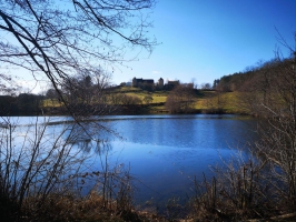 S'il est bien connu qu'autrefois les parois des églises de nos villes et villages étaient peintes, il n'est pas fréquent de pouvoir profiter du spectacle d'un intérieur orné de mille couleurs. Ces peintures murales, associées à de superbes vitraux et à un abondant mobilier constitué principalement de statues et de retables, offrent au regard un ensemble d'une grande harmonie. De la splendeur passée du château de Pénières, naguère propriété de la célèbre famille de Noailles, ne reste que des vestiges, mais sa situation en surplomb d'un étang forme un cadre boisé et vallonné enchanteur, typique du nord de la Châtaigneraie. Le hameau de Pénières sera sur votre chemin si vous décidez d'entreprendre les 8 km de l'itinéraire de randonnée "Les Esclots", dont le départ est fixé à Cros-de-Montvert. Un peu plus loin, vous profiterez de l'architecture traditionnelle du hameau de Monteil - maisons, granges, fours à pain, lavoir et même cadran solaire - avant d'embrasser la solitude de la forêt et de ses mystères...
